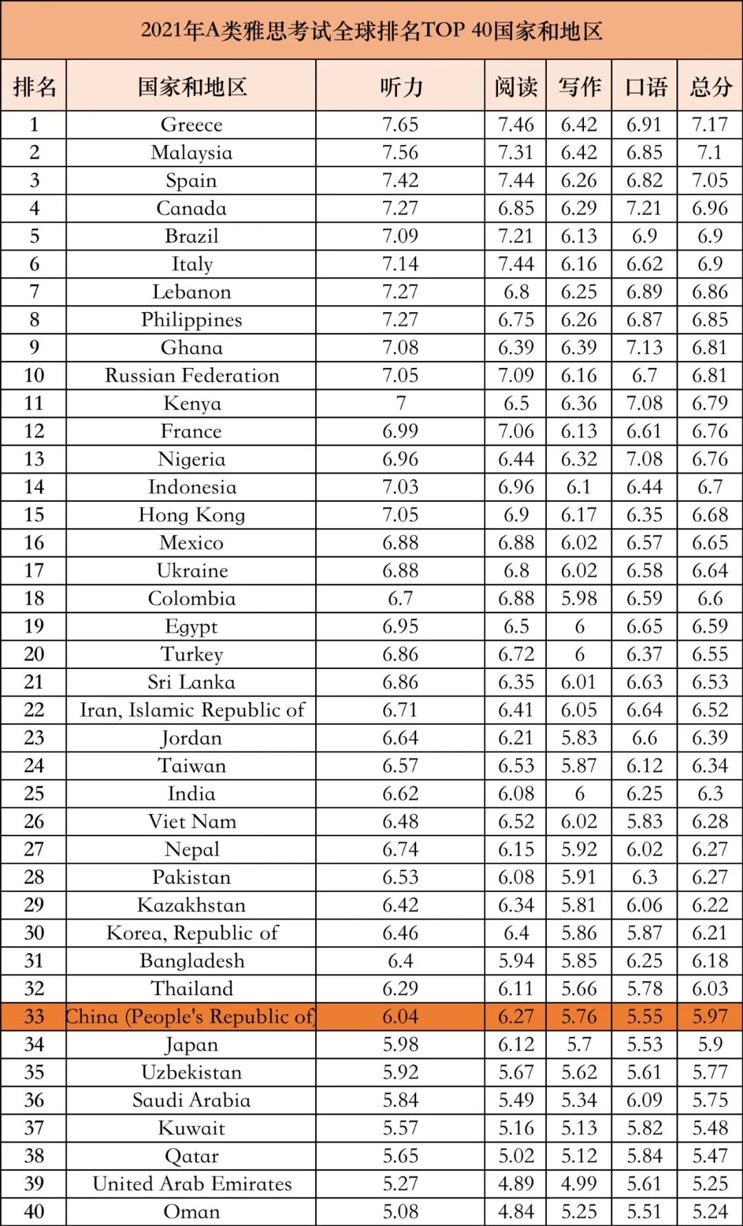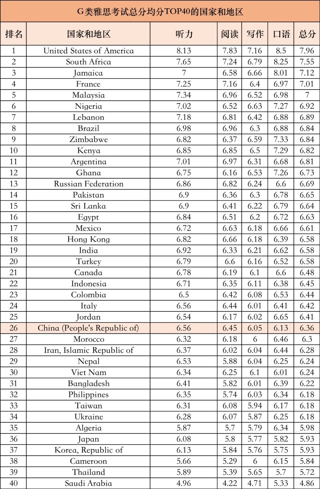全球雅思成绩大公布来源:自由学派