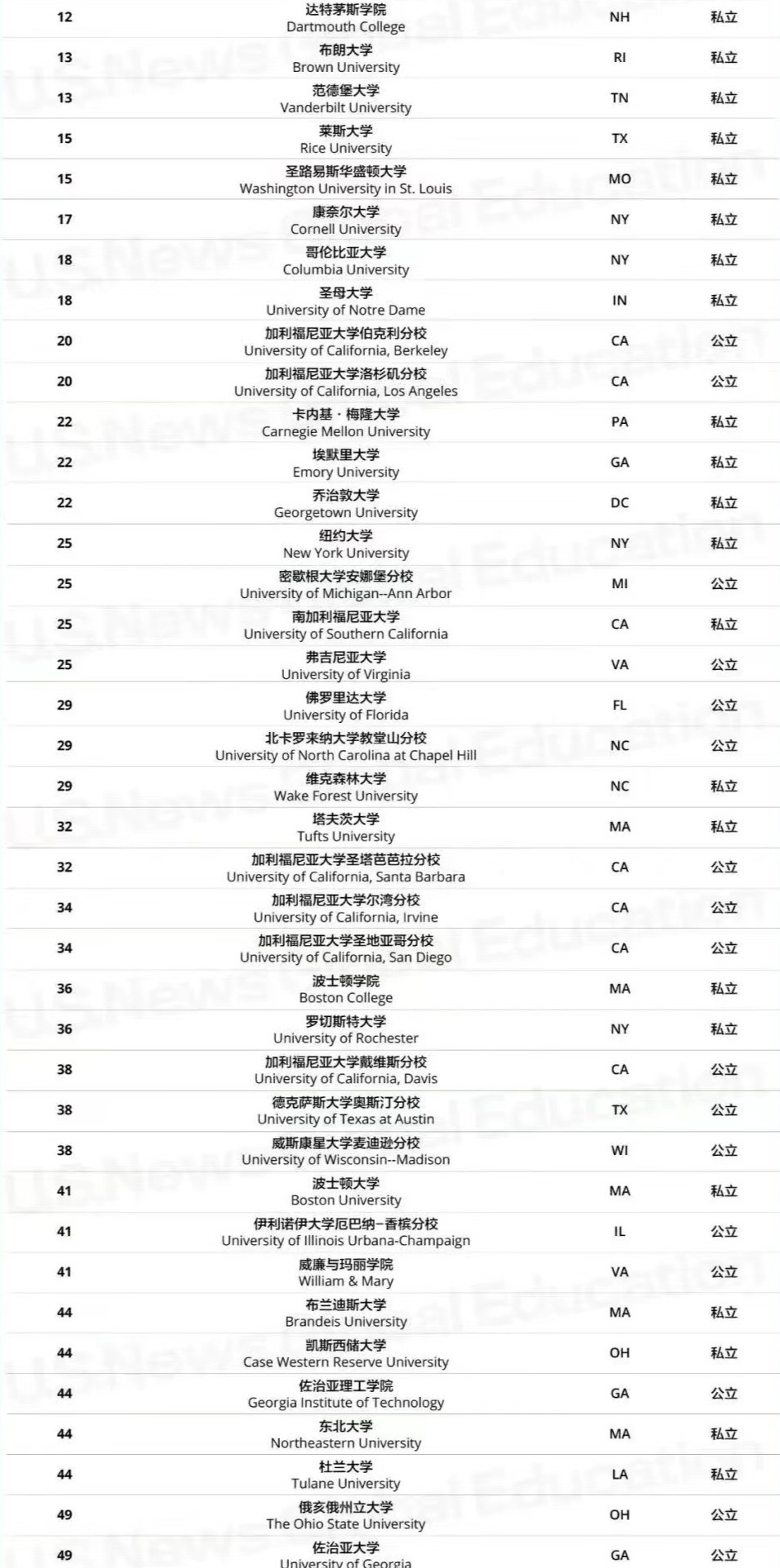 纽约大学达到历史最高排名 UC系两所院校双双挤入TOP 20 在此次排名中,排名波动较大的主要集中在TOP 20-50的院校: