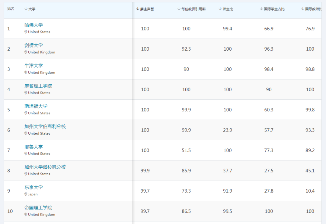 雇主声誉 (10%):基于超过 75,000 名雇主关于大学毕业生就业水平调查问卷的答复